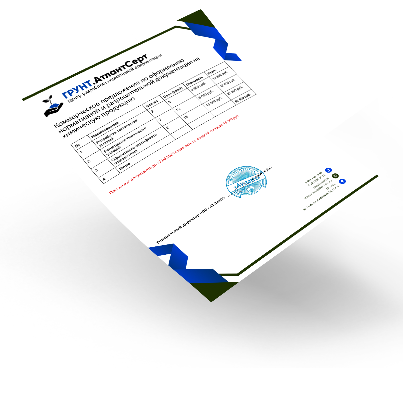 Это позволит в кратчайшие сроки получить любую разрешительную документацию на вашу продукцию